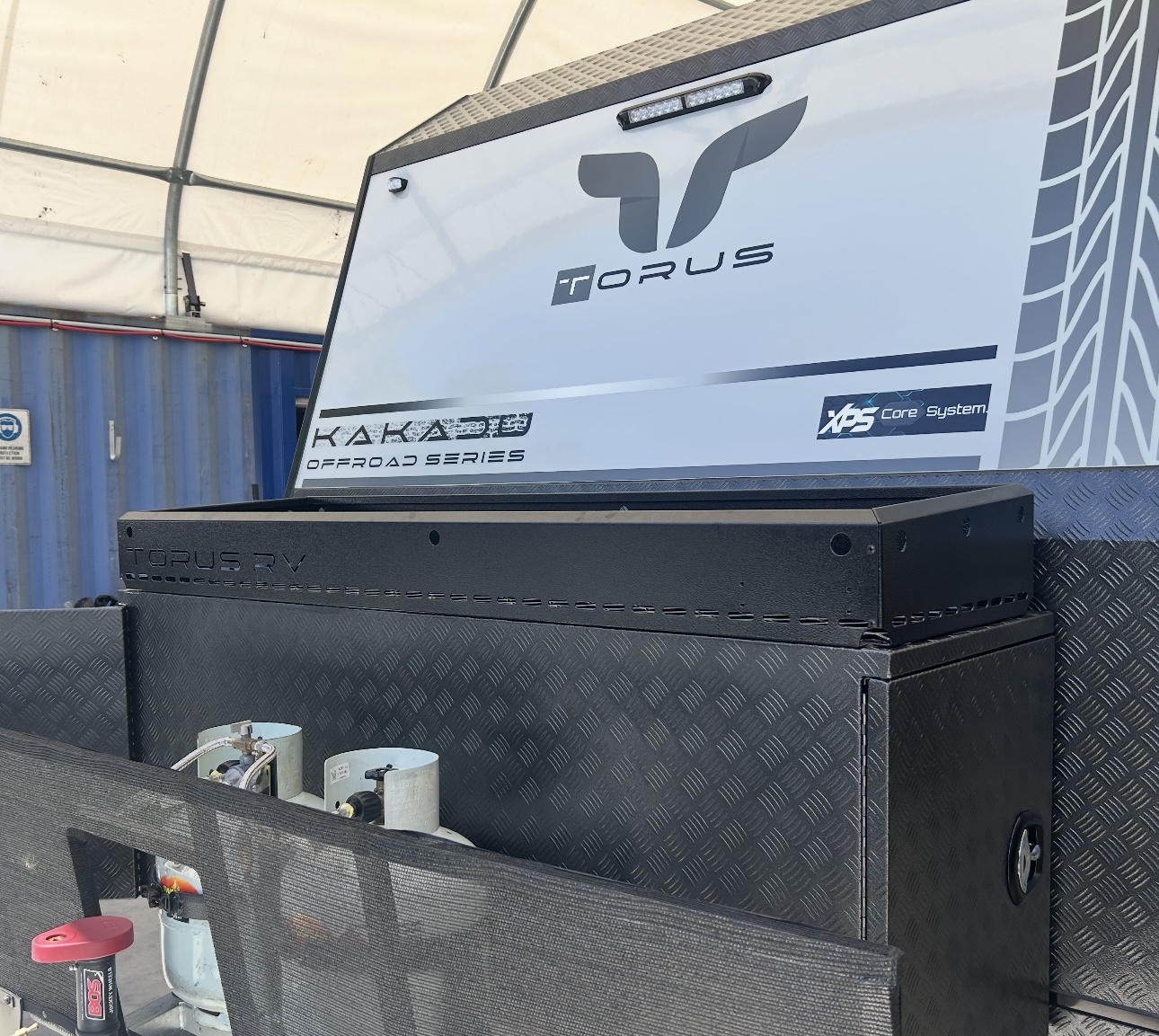 Upgrade your touring setup with our Large Firewood Box, designed specifically to mount securely on top of the large drawbar toolbox of Torus RV Caravans. Purpose-built for practicality and durability, this firewood box keeps your wood neatly contained, protected, and easy to access.
